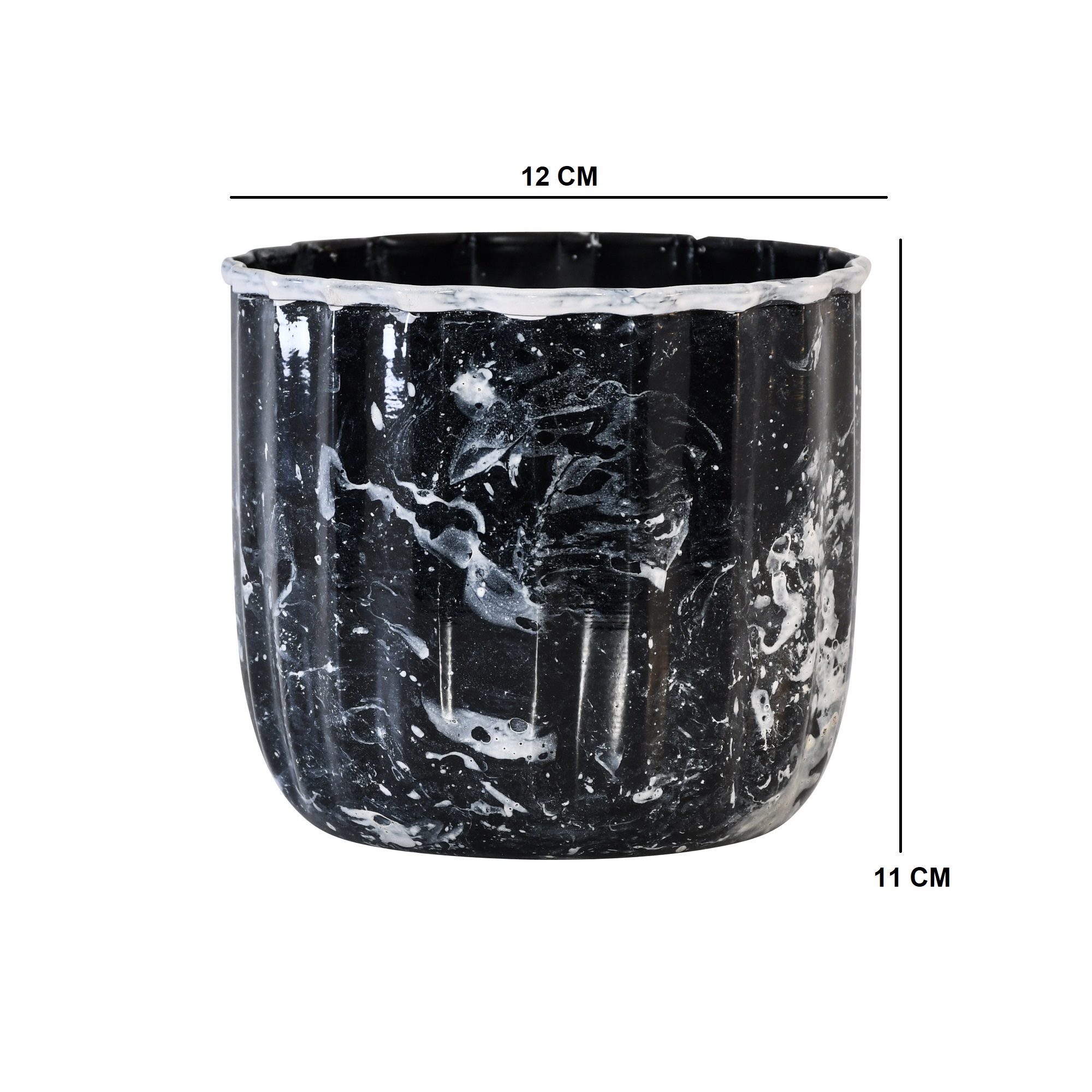 Fluted Black Marble Planter with White Wavy Rim