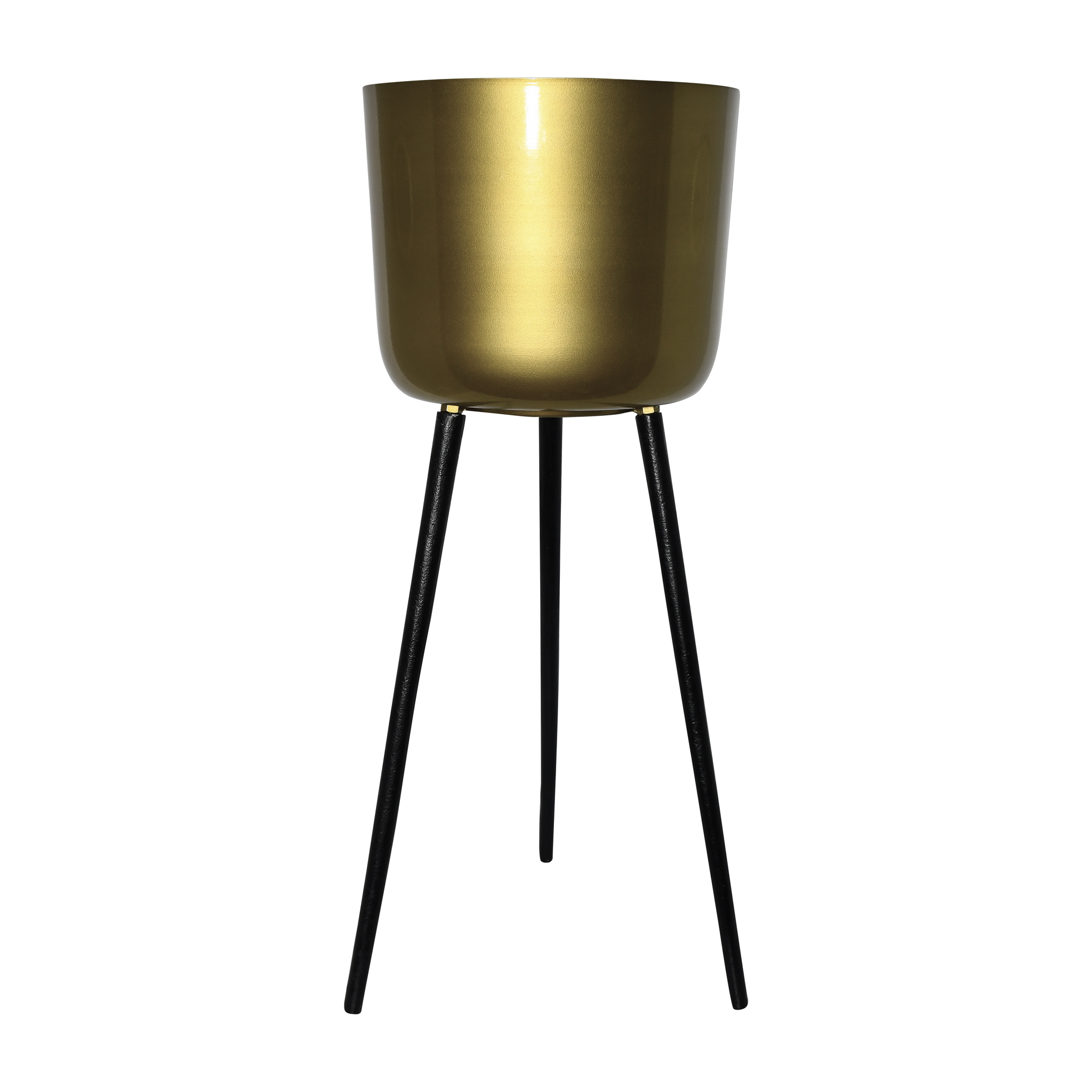 Modern Gold Metal Pot with Black Aluminium Legs – 59 cm Tall Indoor Planter