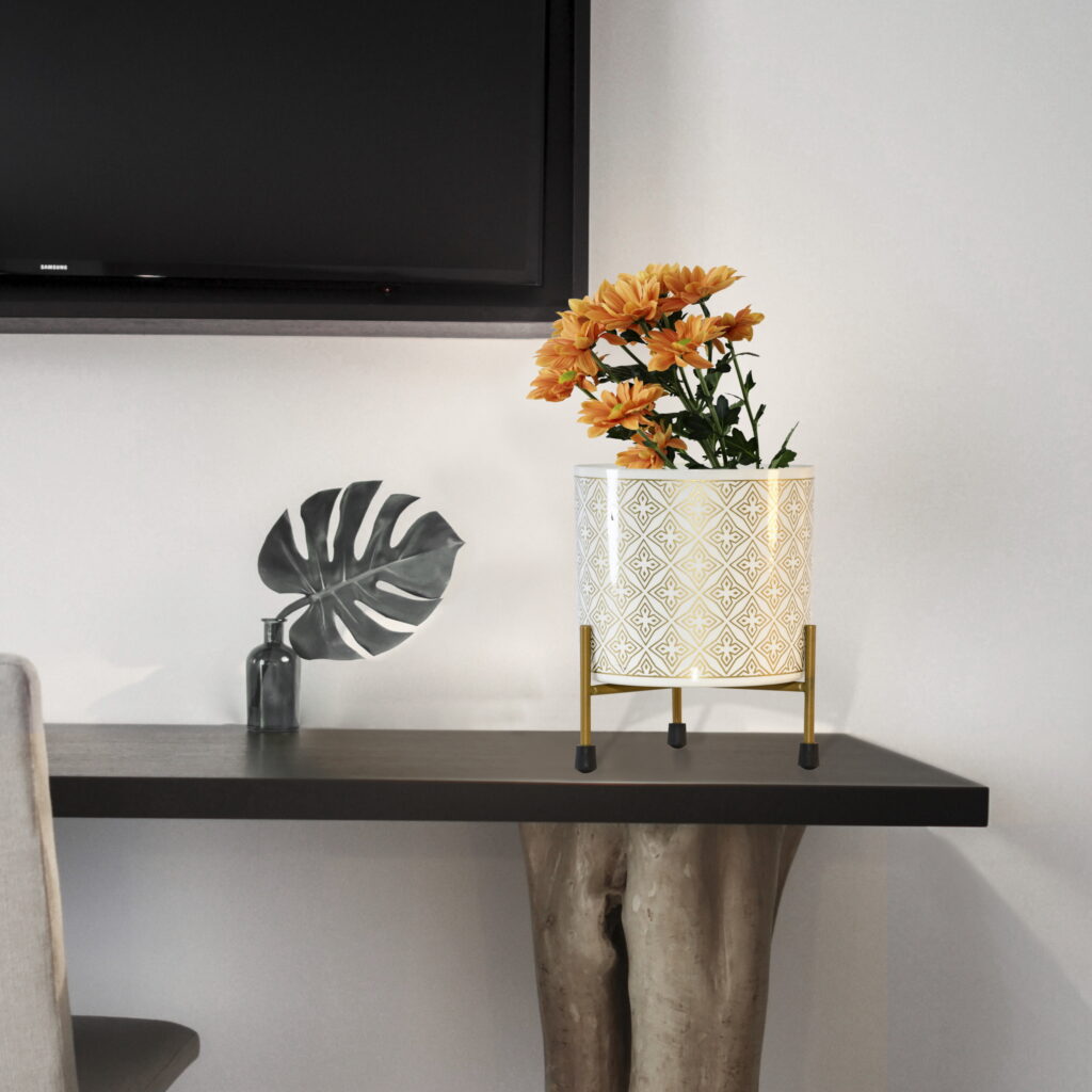 Bohemian Arch & Leaf Pattern Planter with Stand