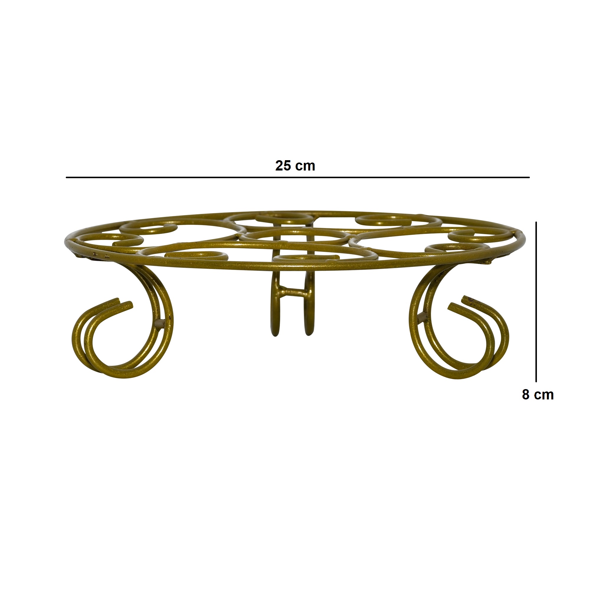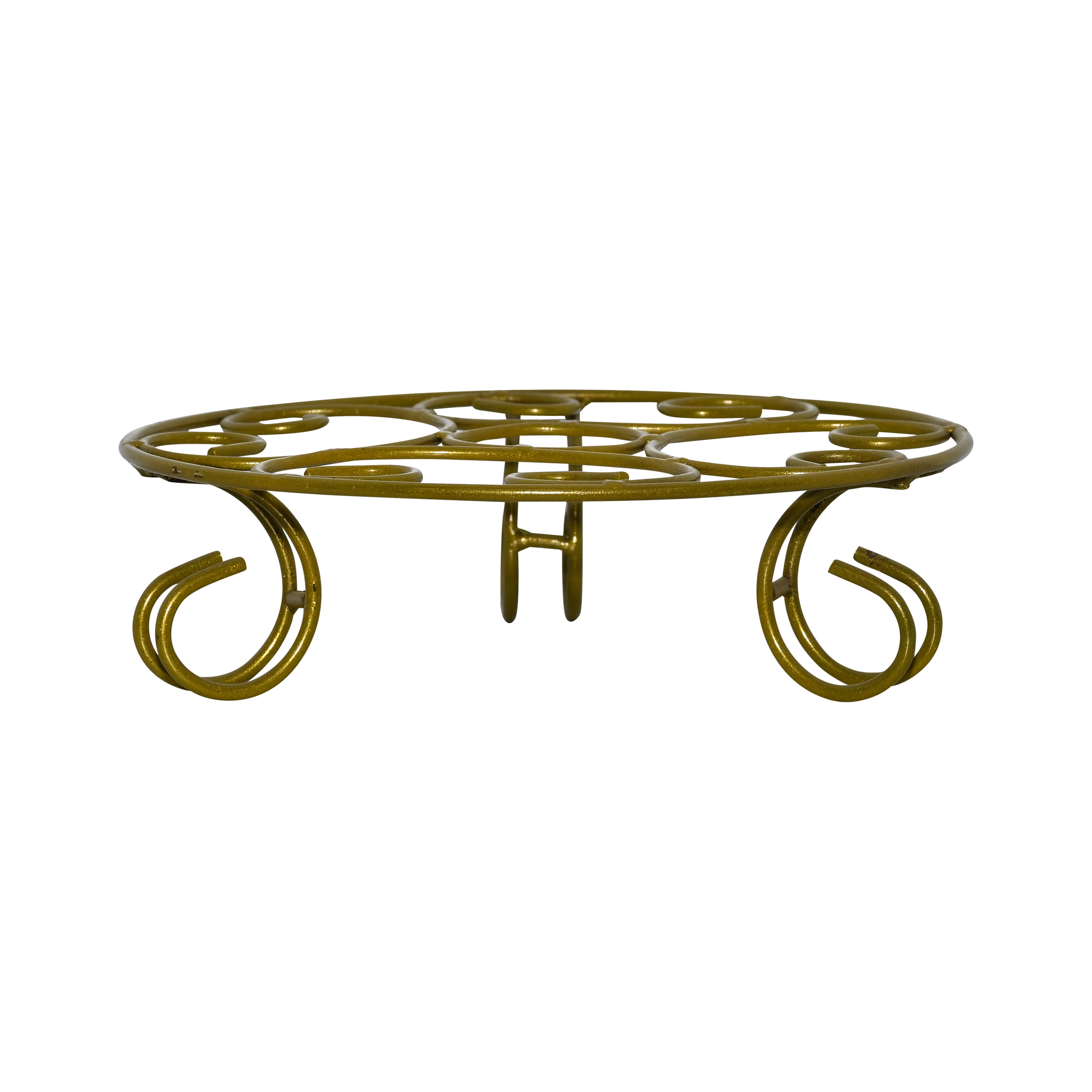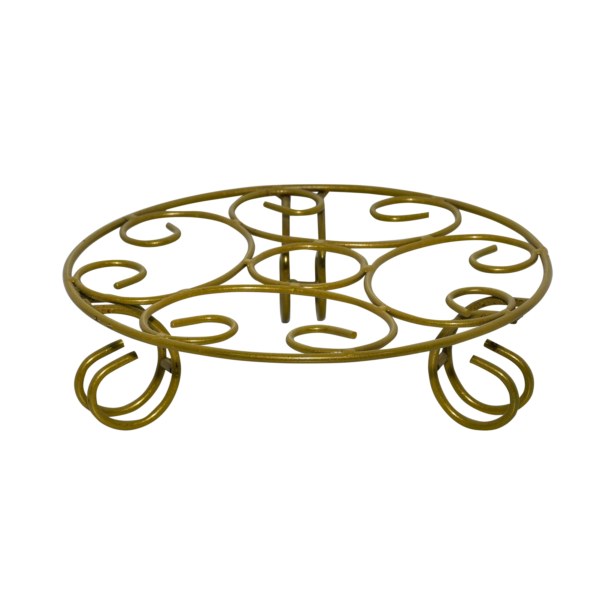 A durable and ornate short stand, skillfully crafted from iron with a classic black finish. This low-profile stand features an elegant design with four stable, scrolled feet that provide excellent support. The circular top is an intricate web of swirls and curves, creating a beautiful platform to display your favorite plant pots. Ideal for both indoor and outdoor use, it elevates planters to protect flooring and surfaces while adding a touch of timeless, traditional charm to your home, balcony, or garden.