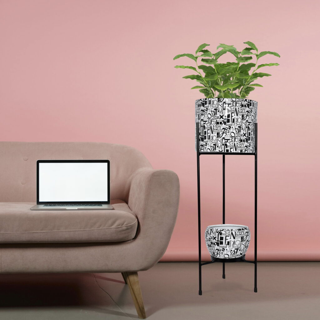 Floral Iron Two-Pot Planter with Stand – 60 cm Tall Indoor/Outdoor Decorative Plant Holder